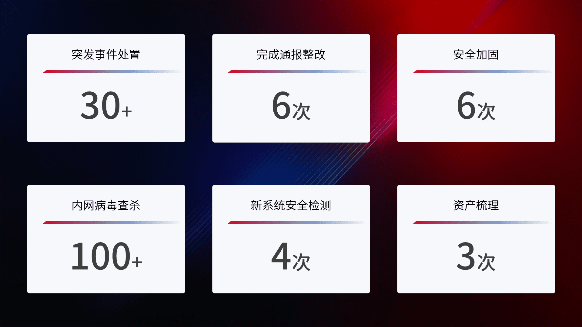 网络安全加固与风险管理:通过技术加固手段,,,,如加强区域隔离,,缩减攻击内网横向移动的范围;优化现有网络安全管理制度,,降低网络威胁暴露面,,,,减少被黑客攻击的可能性。。。。
